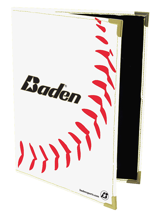 Represent your favorite sport with a baseball or softball notebook to take on or off the field. The notebook comes with paper plus a spot for a pen and business cards.